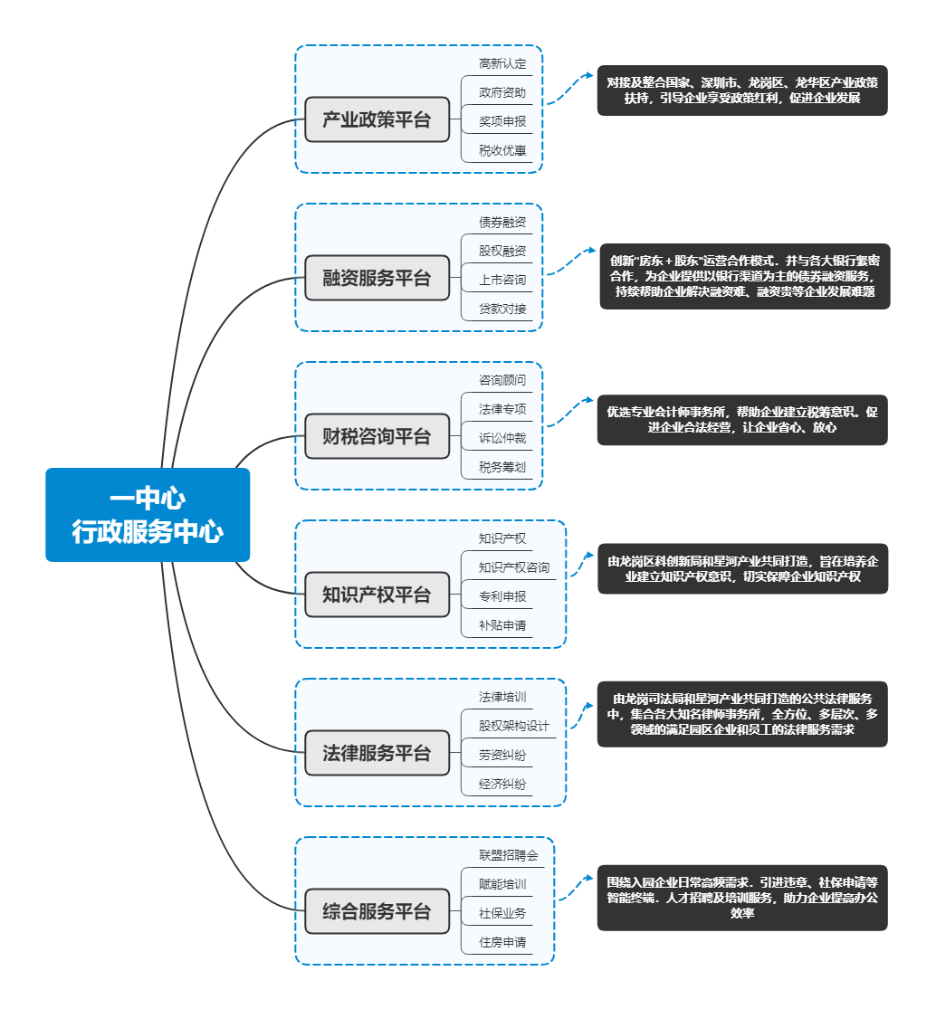 高質(zhì)量發(fā)展需要精細(xì)化運(yùn)營(yíng) 2022年以來(lái),政策不斷加持下,建設(shè)認(rèn)定一批“專精特新”產(chǎn)業(yè)園,加快“專精特新”企業(yè)集聚發(fā)展;支持“專精特新”產(chǎn)業(yè)園提升服務(wù)功能,鼓勵(lì)產(chǎn)業(yè)園區(qū)引進(jìn)重點(diǎn)項(xiàng)目和企業(yè),培育和壯大重點(diǎn)產(chǎn)業(yè)集群已經(jīng)成為國(guó)內(nèi)部分城市推動(dòng)“專精特新”企業(yè)集群集聚的一種選擇。如重慶兩江新區(qū)認(rèn)定金泰產(chǎn)業(yè)園、大地企業(yè)公園等四個(gè)園區(qū)為為“專精特新”產(chǎn)業(yè)園等。 在此基礎(chǔ)上,一方面,產(chǎn)城運(yùn)營(yíng)商聚焦專精特新發(fā)展的關(guān)鍵領(lǐng)域和環(huán)節(jié),在園區(qū)運(yùn)營(yíng)服務(wù)層面構(gòu)建專門面向?qū)>匦缕髽I(yè)的服務(wù)框架。如星河產(chǎn)業(yè)集團(tuán)提出了“1+2+3”專精特新的服務(wù)模式?!?”是區(qū)域政府,包括國(guó)家的有關(guān)部門,在政策方向上進(jìn)行方向指導(dǎo);“2”是培育單位,星河產(chǎn)業(yè)集團(tuán)聯(lián)合領(lǐng)軍企業(yè)研究院共同成立了專精特新的服務(wù)中心,通過(guò)研究院和星河產(chǎn)業(yè)集團(tuán)做培育單位進(jìn)行企業(yè)培育和招商運(yùn)營(yíng)?!?”是小巨人企業(yè),通過(guò)龍頭企業(yè)、小巨人企業(yè)的參與,構(gòu)建產(chǎn)業(yè)協(xié)同、創(chuàng)新帶動(dòng)的共建模式。與此同時(shí),星河還搭建了“1+6”重點(diǎn)工程,加速專精特新企業(yè)集聚、成長(zhǎng)、創(chuàng)新轉(zhuǎn)型。 另一方面,在政策指引下,不僅是企業(yè)在走向?qū)>匦?,園區(qū)運(yùn)營(yíng)商也在打造“專精特新”運(yùn)營(yíng)模式。其一,賽道專業(yè)化,園區(qū)運(yùn)營(yíng)商通過(guò)打造主題園區(qū),推動(dòng)產(chǎn)業(yè)鏈上下游的中小企業(yè)規(guī)?;?,讓企業(yè)在產(chǎn)業(yè)生態(tài)中持續(xù)發(fā)展,建立穩(wěn)定可觀的供應(yīng)鏈需求運(yùn)營(yíng)商配合集中投放資源,協(xié)同政府制定政策,讓企業(yè)獲得成本可控的長(zhǎng)期供應(yīng)鏈保障。其二,運(yùn)營(yíng)精細(xì)化,不斷加強(qiáng)園區(qū)服務(wù)的數(shù)字化、智能化管理,完善園區(qū)配套建設(shè)和服務(wù)體系,在延伸產(chǎn)業(yè)鏈條、形成產(chǎn)業(yè)集群、構(gòu)建產(chǎn)業(yè)生態(tài)的同時(shí)提升運(yùn)營(yíng)商資產(chǎn)效率。其三,資源特色化,園區(qū)運(yùn)營(yíng)商基于園區(qū)產(chǎn)業(yè)基礎(chǔ)、自身資源稟賦、區(qū)域市場(chǎng)擴(kuò)張能力聚焦細(xì)分領(lǐng)域打造自身核心業(yè)務(wù)優(yōu)勢(shì)。如微醫(yī)集團(tuán)結(jié)合“互聯(lián)網(wǎng)+醫(yī)療健康”業(yè)態(tài),打造互聯(lián)網(wǎng)健康醫(yī)療小鎮(zhèn),覆蓋“全科+???、線上+線下”的醫(yī)療健康服務(wù)體系。其四,服務(wù)創(chuàng)新化,運(yùn)營(yíng)商搭載數(shù)字化等新興技術(shù)賦能園區(qū)運(yùn)營(yíng)管理,通過(guò)打造智慧園區(qū)平臺(tái)帶動(dòng)管理模式創(chuàng)新、通過(guò)REITs等投融管退模式打通輕重資產(chǎn)循環(huán),創(chuàng)新商業(yè)模式等。深圳·星河雙子塔:依托深圳·星河WORLD產(chǎn)融大城,搭載全方位服務(wù)及配套 3月底,“融合共生 向新而行”中國(guó)最高等高雙子塔全球發(fā)布會(huì)在深圳·星河WORLD舉行。深圳·星河雙子塔作為深圳·星河WORLD產(chǎn)融大城升級(jí)力作,于深圳中軸之上,乘160萬(wàn)m2超級(jí)灣區(qū)都會(huì)之勢(shì),打造369米中國(guó)最高等高雙子塔。深圳·星河WORLD是集產(chǎn)業(yè)、商務(wù)、居住、教育、購(gòu)物、休閑等多種業(yè)態(tài)配套的產(chǎn)融新城,園區(qū)占據(jù)福田CBD、深圳北站商務(wù)區(qū)和坂雪崗科技城三角鼎立優(yōu)勢(shì)區(qū)位,定位“園區(qū)+金融”雙閉環(huán)總部基地。目前已聚集超1200家企業(yè),其中世界500強(qiáng)26家、上市企業(yè)46家,134家國(guó)高企業(yè),形成新一代信息技術(shù)、高端裝備制造、文化創(chuàng)意、生命健康、科技金融五大產(chǎn)業(yè)集群,預(yù)計(jì)雙子塔建成后整個(gè)園區(qū)將提供超7.5萬(wàn)就業(yè)崗位。 產(chǎn)業(yè)、企業(yè)、人才的發(fā)展離不開(kāi)良好的營(yíng)商環(huán)境,為提升產(chǎn)業(yè)競(jìng)爭(zhēng)力,助推企業(yè)全生命周期成長(zhǎng),星河產(chǎn)業(yè)以聯(lián)盟共享理念為核心,以資源運(yùn)作為抓手,以平臺(tái)生態(tài)圈建設(shè)為宗旨,與入駐企業(yè)、合作伙伴、地方政府等共建全方位產(chǎn)業(yè)運(yùn)營(yíng)服務(wù)體系,實(shí)現(xiàn)多方共生、共贏。依托星河強(qiáng)大的綜合業(yè)務(wù)板塊協(xié)同,星河超級(jí)企業(yè)服務(wù)中心通過(guò)打造“一中心六平臺(tái)”的服務(wù)體系,以產(chǎn)業(yè)服務(wù)為核心、物業(yè)服務(wù)為基礎(chǔ)、商務(wù)及配套服務(wù)為支點(diǎn),致力于締造全方位多層次的高端智慧服務(wù)。該服務(wù)體系涵蓋了279項(xiàng)服務(wù)、逾300人服務(wù)團(tuán)隊(duì)、“1234”響應(yīng)機(jī)制、24小時(shí)服務(wù)終端等內(nèi)容,已累計(jì)服務(wù)企業(yè)逾1300家次,協(xié)助逾700家企業(yè)開(kāi)展申報(bào)工作、服務